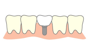自分の歯とほぼ同じように噛め、見た目にも天然の歯と変わりませんが、顎の骨にインプラントを埋める手術が必要で他の治療に比べ割高です。
