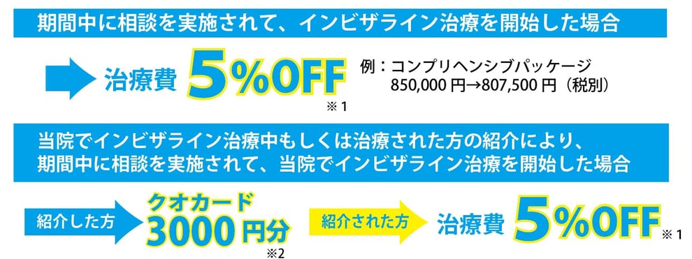 ※1:キャンペーン期間内の相談予約を通じて、キャンペーン後2か月以内に治療開始をした場合に限ります。
