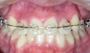 プラスチックでできているブラケットです。 噛み合わせによっては磨り減ったり、ワイヤーの力に負けてしまう場合もあります。